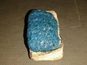 Kiln 2 had a higher firing temperature of 1010°C and the result was much more successful, with a nice glaze produced and a deep blue colour (see Figs 5, 6 & 7).
