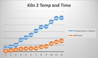 Fig 7. Kiln 2 – temperature to time ratio.